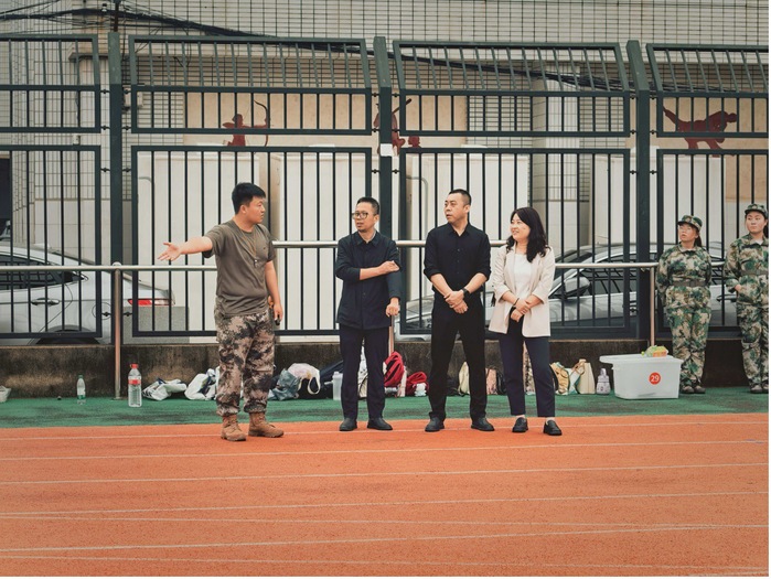 在训练现场,公司领导班子成员驻足观摩新生队列训练,细致查看军姿、转体、齐步走等动作的规范性,密切关注同学们的精神风貌与训练状态。训练间隙,领导们与带队教官亲切交谈,详细了解军训日程安排、训练强度及后勤保障情况,关切询问教官们的工作生活与身体状况,对教官们的专业指导与辛勤付出表示诚挚感谢。随后,领导老师们走到新生中间,与同学们亲切互动,仔细询问大家的训练感受、校园适应情况及身体状态,反复叮嘱同学们在刻苦训练的同时注重劳逸结合,及时补充水分、做好防晒防护,确保以饱满精力投入每日训练。
