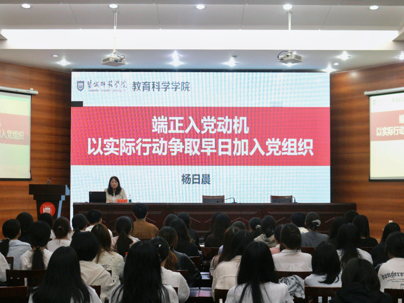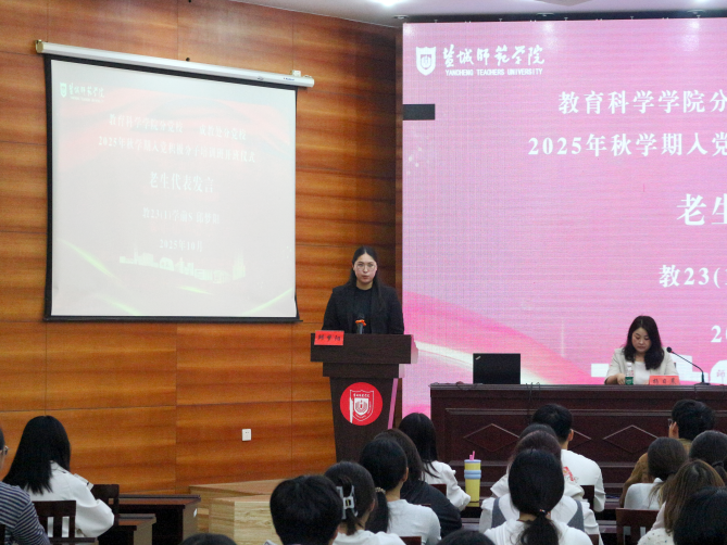 教23(1)班邱梦阳作为老生代表发言。她结合自身的培训感受与实践经历,勉励新学员以“悟初心”定方向,以“担使命”强本领,以“挑重担”长才干、以“感党恩”馈社会,将入党热情转化为强党性、练本领、作表率的实际行动。教23(2)班钟潇砚作为本期培训班学员代表发言。她表示,成为入党积极分子不是终点线,而是重新出发的起跑线,全体学员要时刻铭记习近平总书记的殷切嘱托,以理想为魂、以担当为骨、以奋斗为翼,努力成长为有理想、敢担当、能吃苦、肯奋斗的新时代好青年。