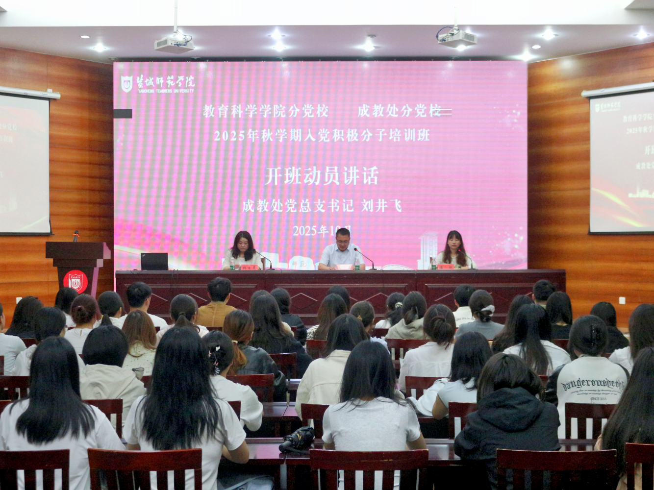 10月15日下午3点,教育科学公司党委在国培报告厅开展了2025年秋学期入党积极分子培训班开班仪式暨首场主题党课活动。成教处党总支书记刘井飞、教育科学公司党委书记杨日晨、员工代表和培训班全体学员参加仪式。开班仪式由bw西汉姆联组织员潘虹主持。