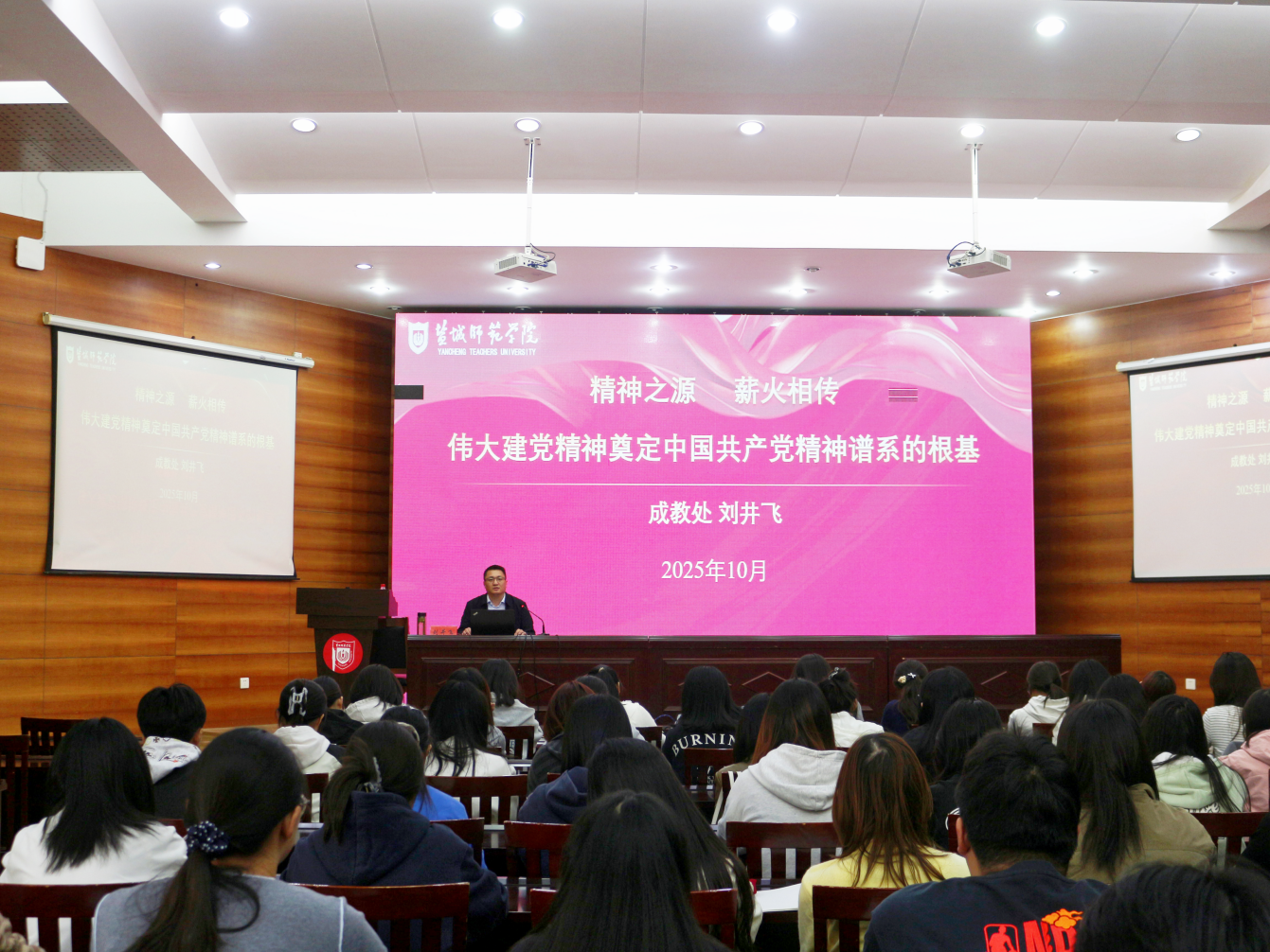 刘井飞深入阐述了伟大建党精神的时代深意与丰富内涵,他指出,伟大建党精神是中国共产党人精神谱系的源头活水,其蕴含的“坚持真理、坚守理想,践行初心、担当使命,不怕牺牲、英勇斗争,对党忠诚、不负人民”三十二字,既勾勒出了共产党人的精神底色,也为青年践行使命、勇担重任提供了深厚精神滋养。他强调,伟大建党精神是贯通中国共产党人精神谱系的红线,是党百年奋斗中发展壮大的根本遵循与精神内核,必须深刻理解、代代传承。