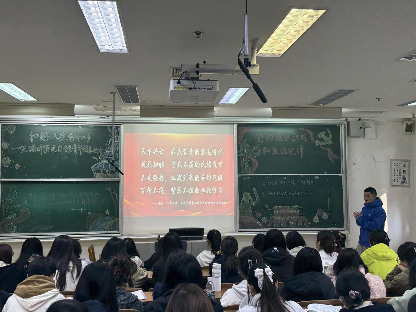 陈志鹏从历史出发,向同学们阐述了抗战胜利的伟大意义与中国共产党在抗战中发挥的中流砥柱作用,剖析了历史虚无主义的表现及危害,强调树立正确历史观的重要性。他指出,抗战精神是中华民族的宝贵财富,要从历史中汲取力量,只有学好历史,以史为鉴,才能知兴替、远观未来,明白过去成功的原因,从而知道未来如何成功,在面临艰难险阻时,抗战精神能够指引我们攻坚克难,实现民族复兴。