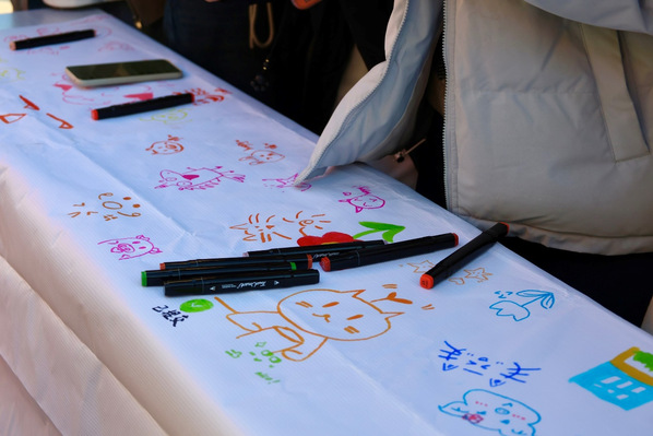 主楼A面广场上,两处活动相映成趣,成为治愈心灵的一方天地。“情绪涂鸦墙”前,学子们手握彩笔,以明快色彩勾勒心间喜悦,用深邃线条铺陈隐秘迷茫,让无形的情绪在画布上有了具象归宿。“情绪接力棒”环节更添互动温情,参与者分组围圈,以表情为符、动作为翼,无声传递情绪密码,欢笑中打破隔阂。“情绪解读”中,不少同学袒露创作初心与传递心得,他人的轻声共鸣、暖心点赞,让每一份情绪都被看见、被接纳。此刻,广场便化作联结你我的心灵驿站。