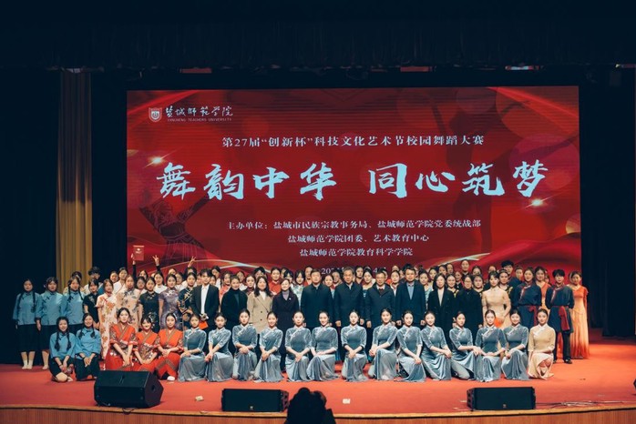 1214日,第27届“创新杯”科技文化艺术节“舞韵中华,同心筑梦”校园舞蹈大赛在新长校区老员工活动中心举办。盐城市委统战部副部长、市民宗局局长、党组书记、一级调研员黄斌,市民族宗教事务局党组成员、副局长陈铁汉,市民族宗教事务局党组成员、副局长王谋,公司副董事长徐华,公司党委常委、统战部部长费正皓出席活动。