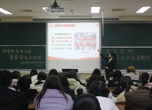 凝聚青春共识,践行使命担当。活动现场座无虚席,学习氛围浓厚。同时,同学们也结合专业进行思考,如何将全会精神融入教学实践,助力祖国未来发展。宣讲结束后,同学们表示深受启发、倍感振奋。大家一致认为,此次宣讲让党的二十届四中全会精神更加贴近校园、贴近自身,进一步明晰了个人成长与国家发展的紧密联系。